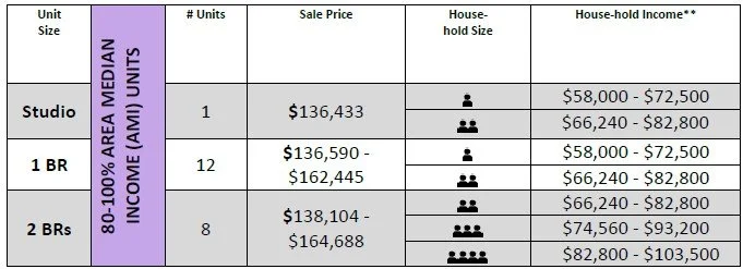 *All Condo Owners will also be responsible for their pro-rata share of HOA fees as defined in the condominium offering memorandum. Income guidelines & permitted household size are subject to change.